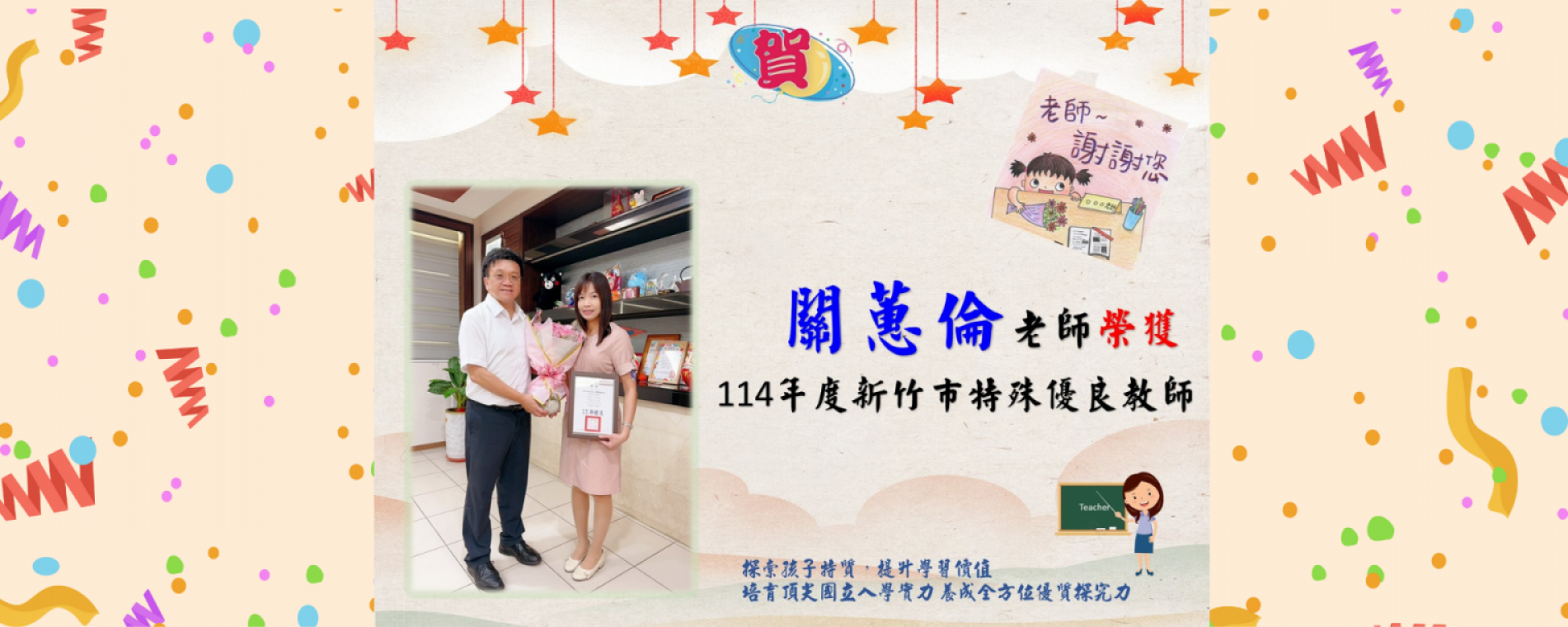 賀本校關蕙倫老師榮獲114年度新竹市特殊優良教師