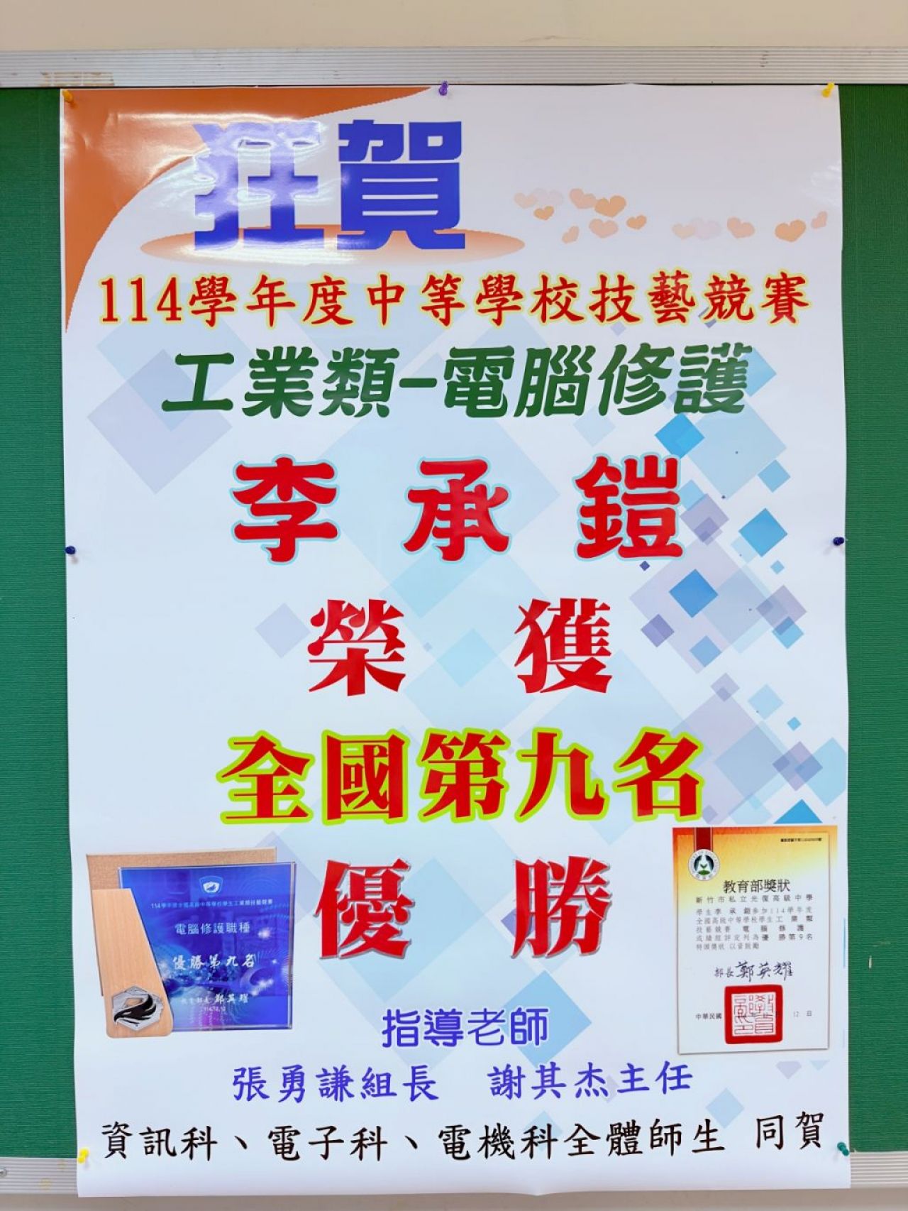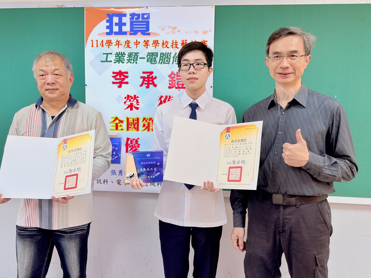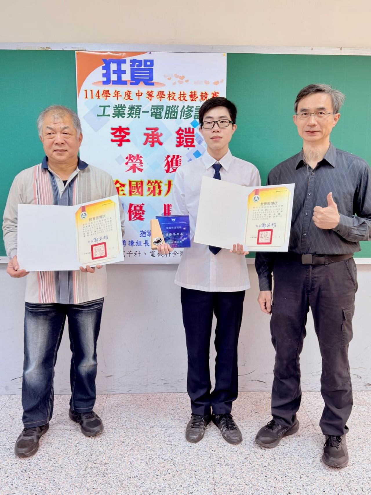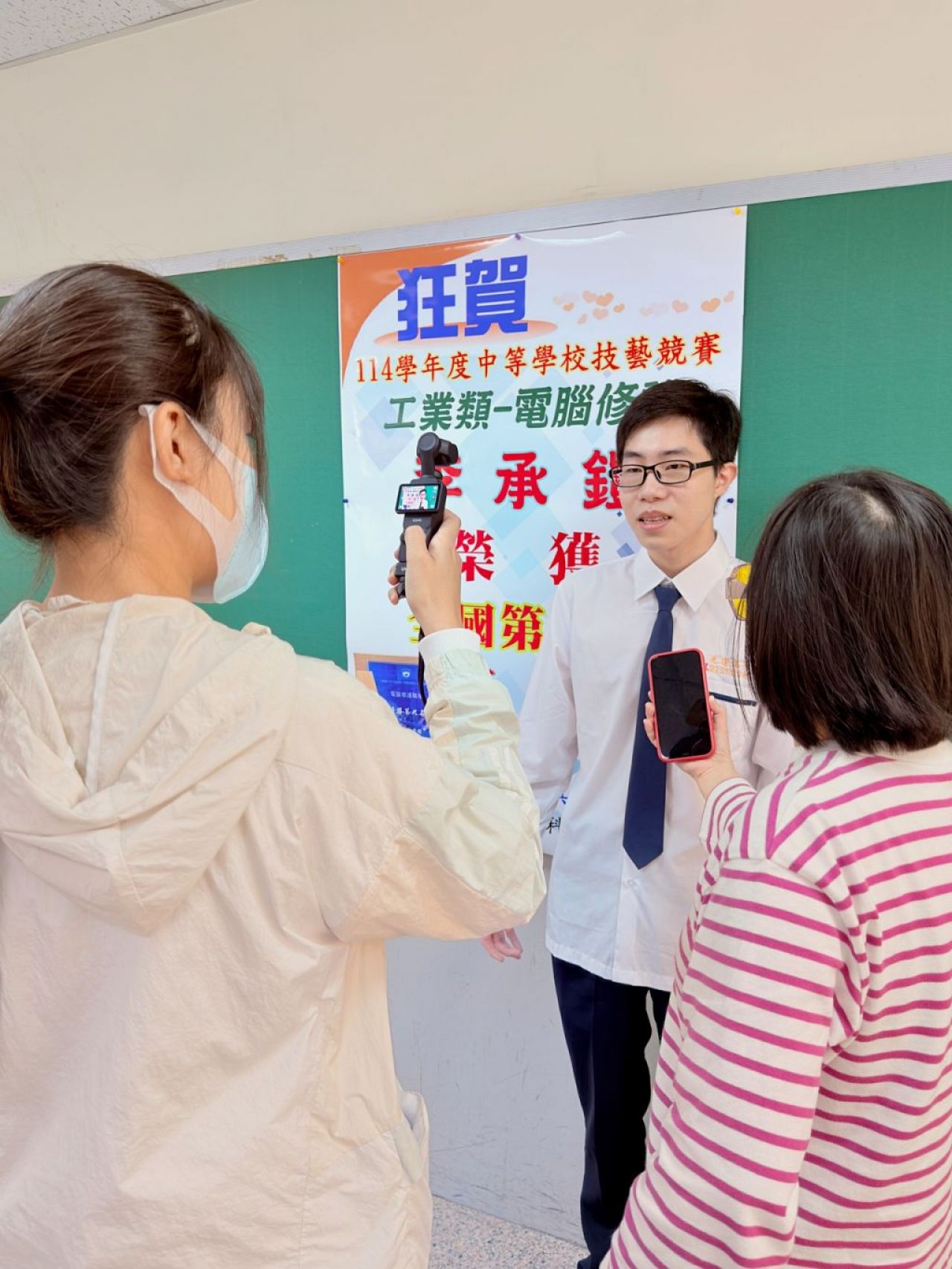 114學年度中等學校技藝競賽工業類-電腦修護-李承鎧榮獲全國第九名電腦 記者會