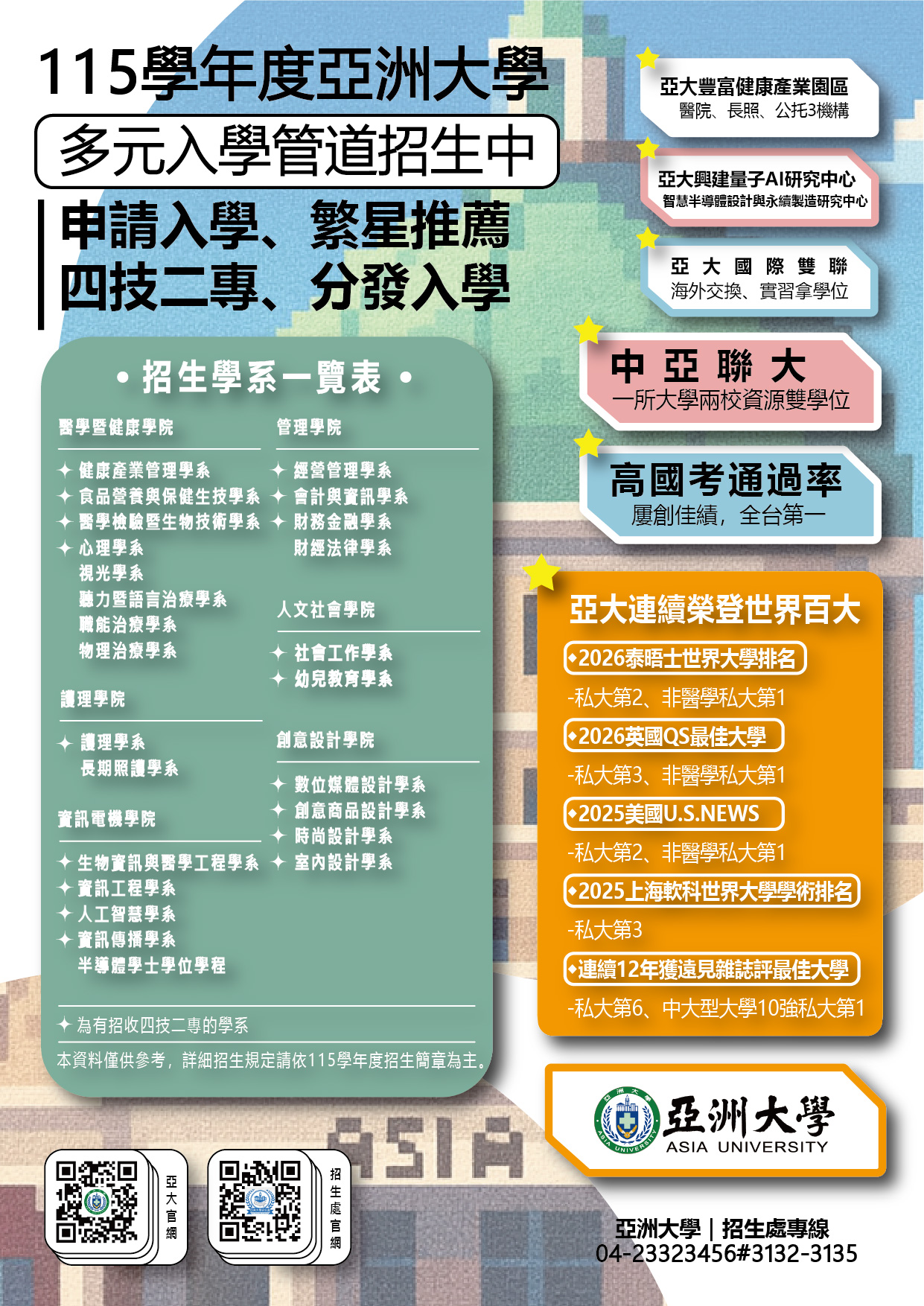 轉知 亞洲大學舉辦「亞洲大學院系特色成果展會暨多元入學管道說明會」