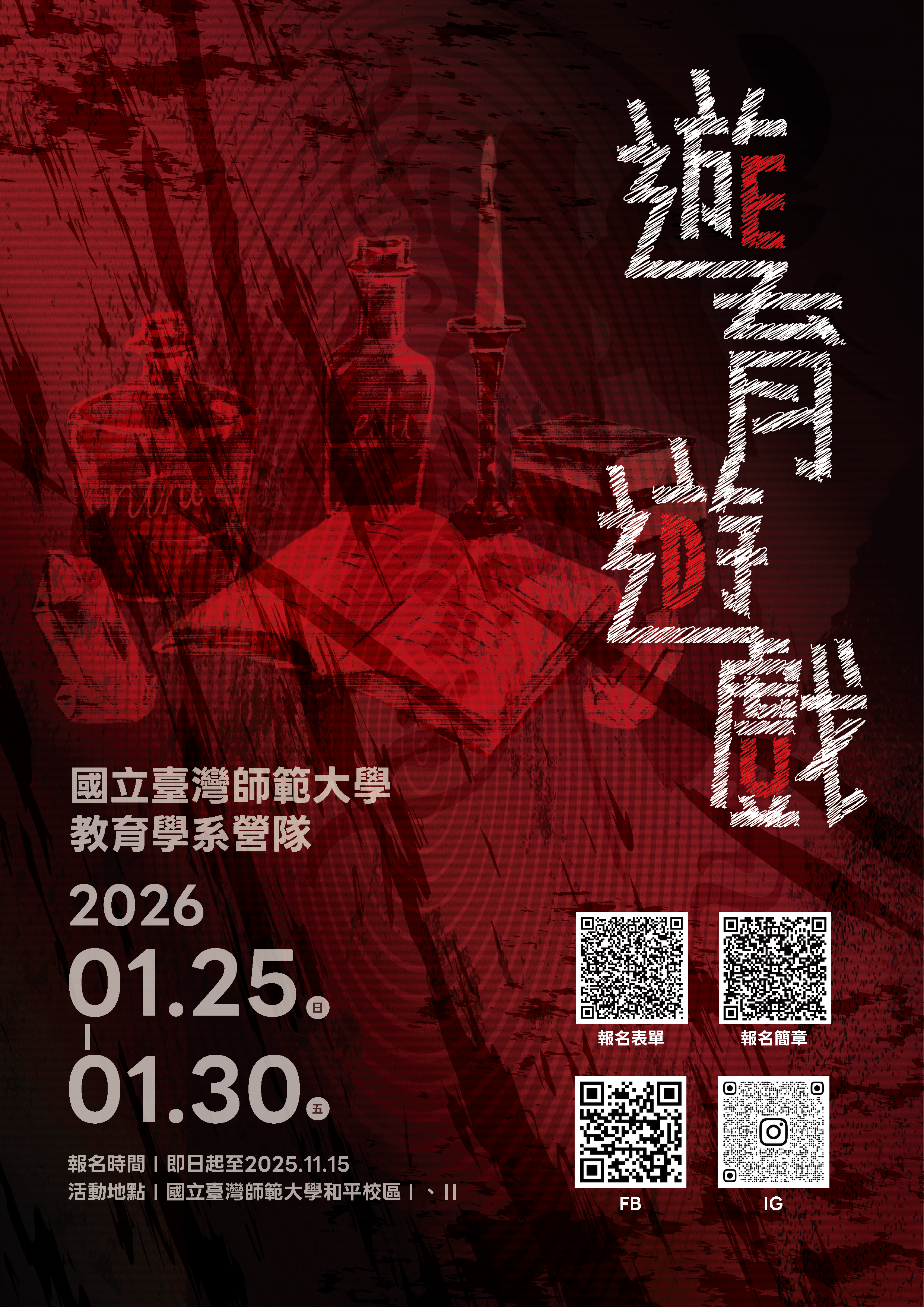 轉知 國立臺灣師範大學教育學系擬辦理「2026教育營—遊育遊戲」活動,謹附相關活動海報(附件一)、簡章(附件二)