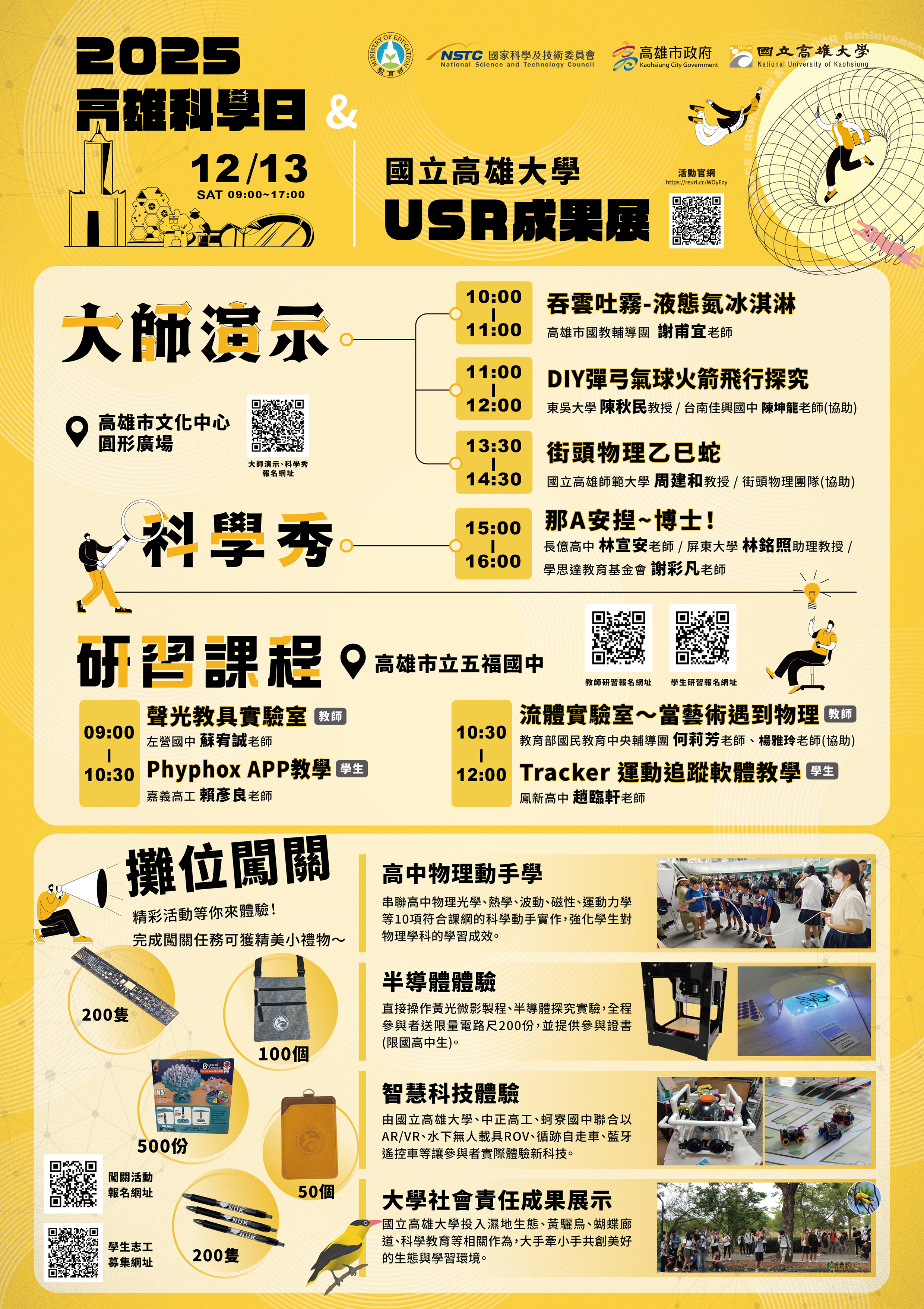 轉知 國立高雄大學科學教育中心謹訂於114年12月13(星期六)舉辦「高雄科學日暨國立高雄大學USR成果展」