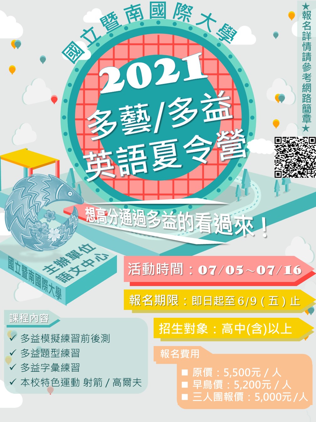 國立暨南國際大學「2021多藝多益英語夏令營」