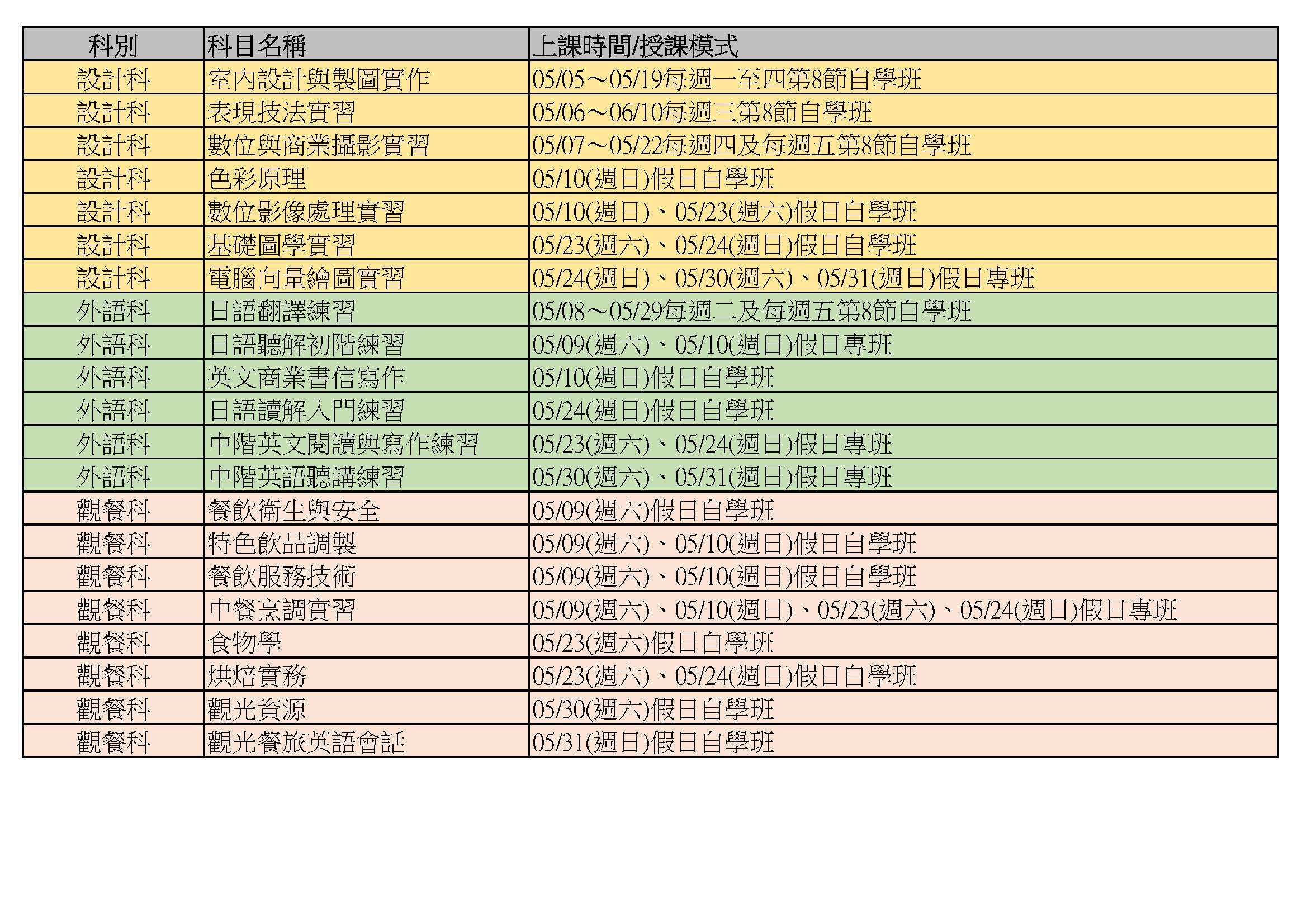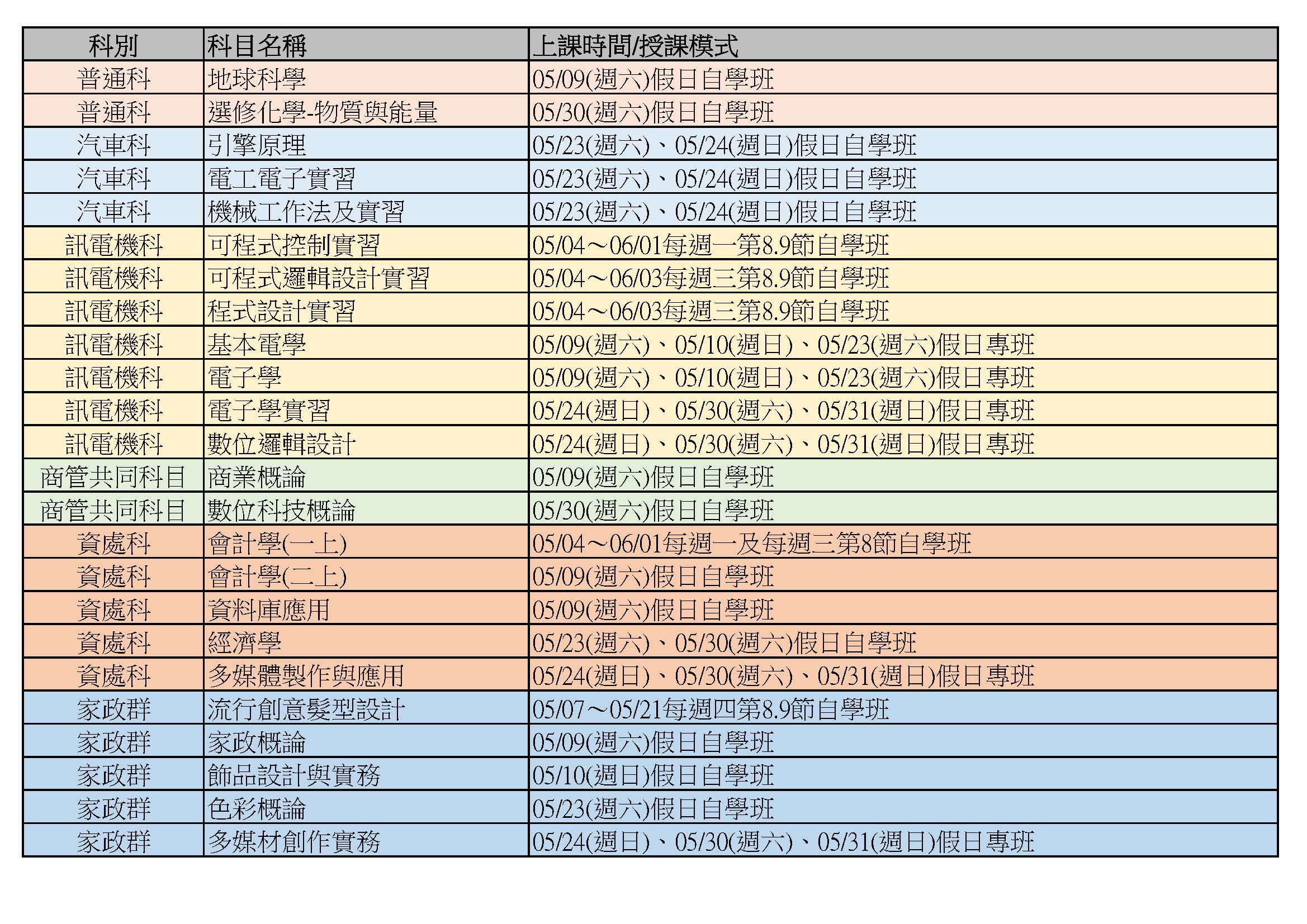 115年05月份普通科重補修及職科專業科目重補修開課時間