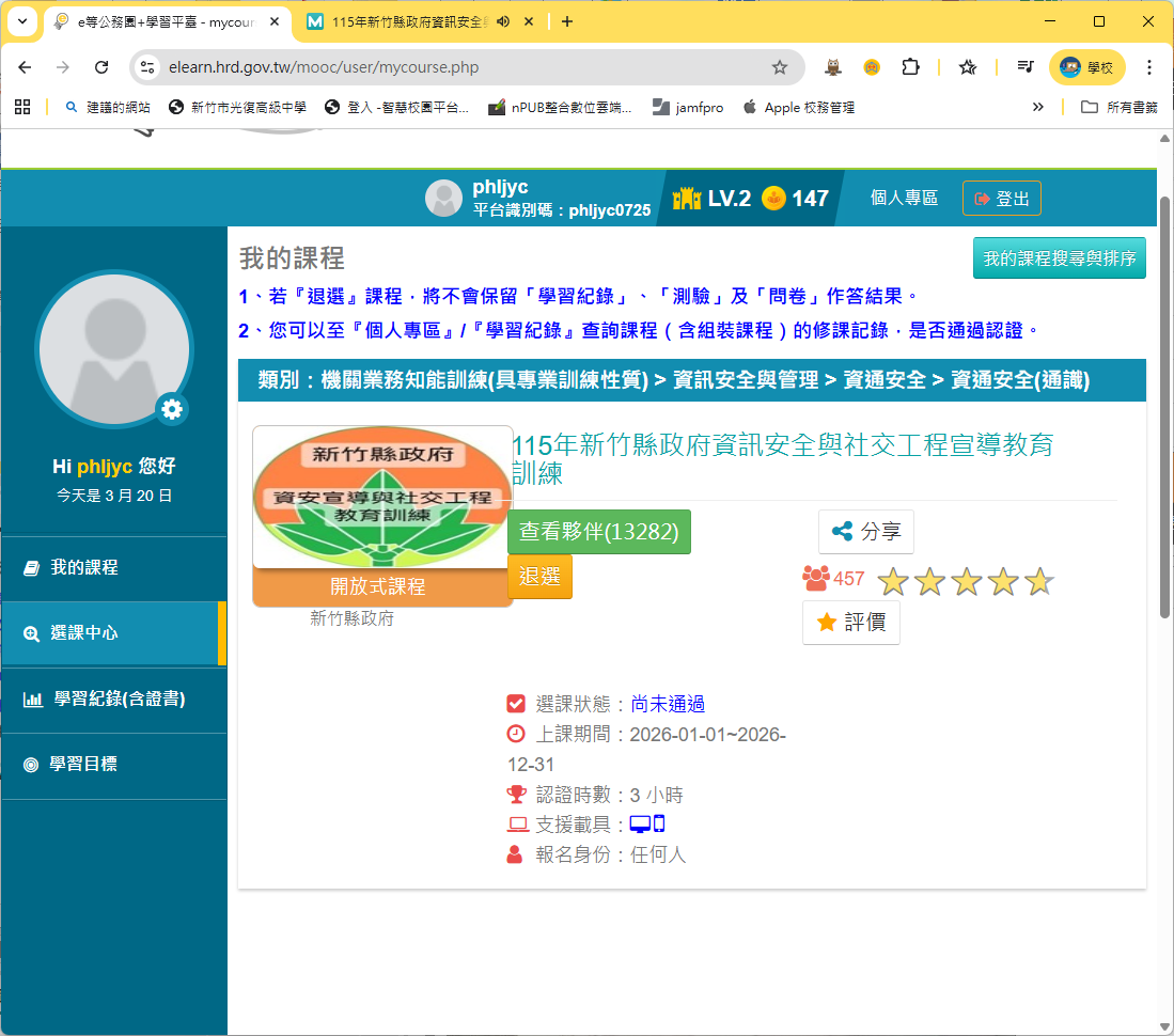 115年新竹縣政府資訊安全與社交工程宣導教育訓練" 課程。